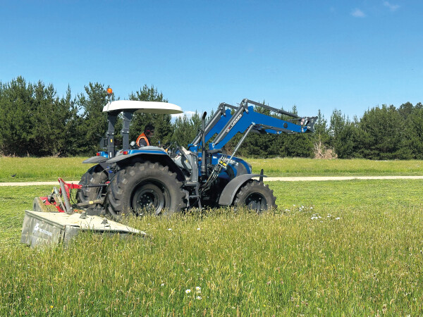 The Landini Landforce 125 ROPS is powered by a robust 4-cylinder, 4.5L turbocharged FPT engine. Delivering a lively 120 horsepower, the power curve felt smoother than a freshly shorn sheep. Peak power arrives at a sensible 2200rpm, meaning you won’t need to rev the poor thing into the next postcode, while peak torque lands nice and early (around 1250rpm) and certainly felt up to the task when coupled to the 3.2m mower, which proved the most power draining of the tools we put it to the test on.